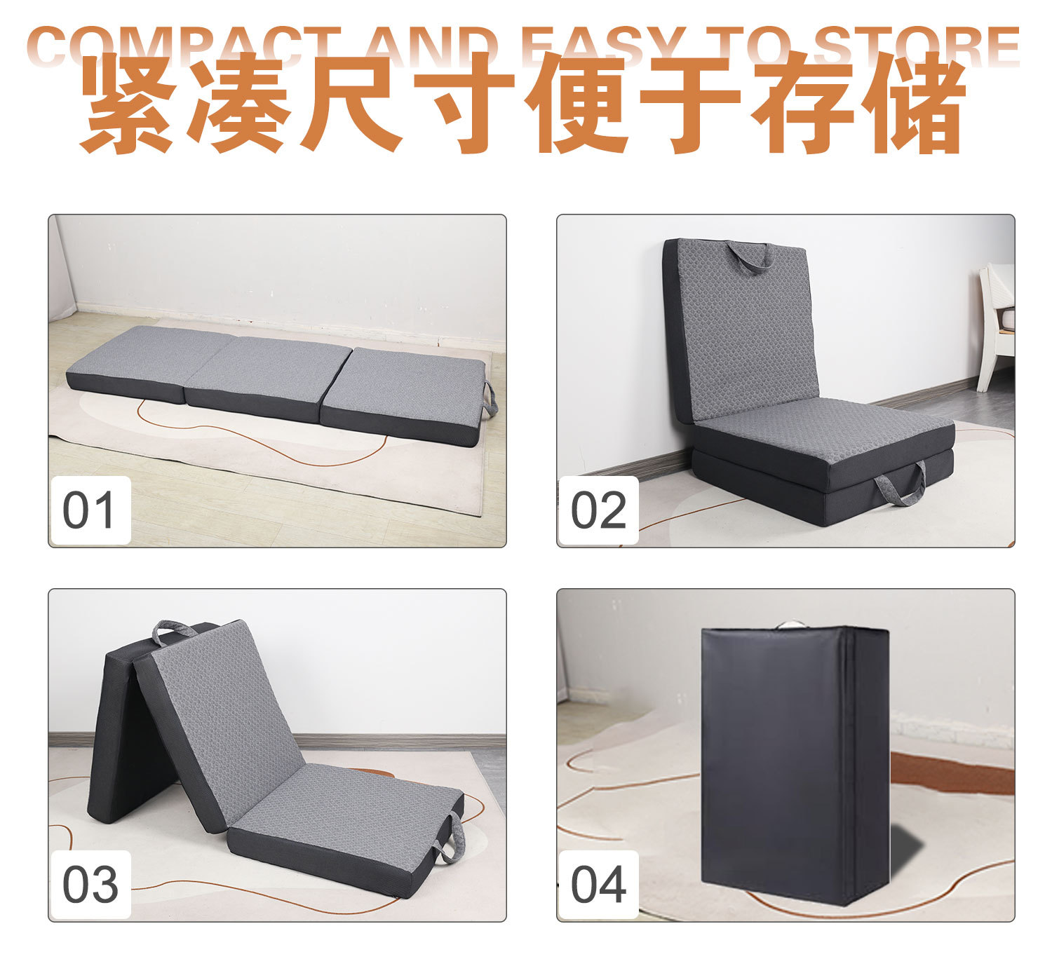 商品名称:跨境新款海绵折叠床垫露营单人床垫懒人床垫学生宿舍三折海绵床