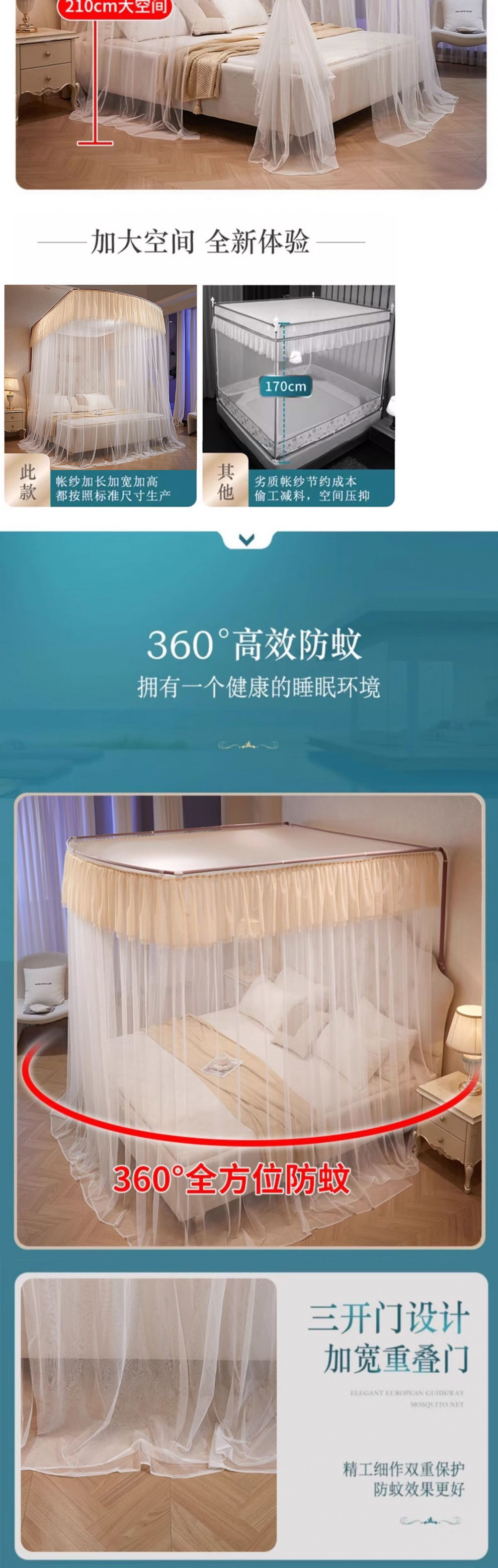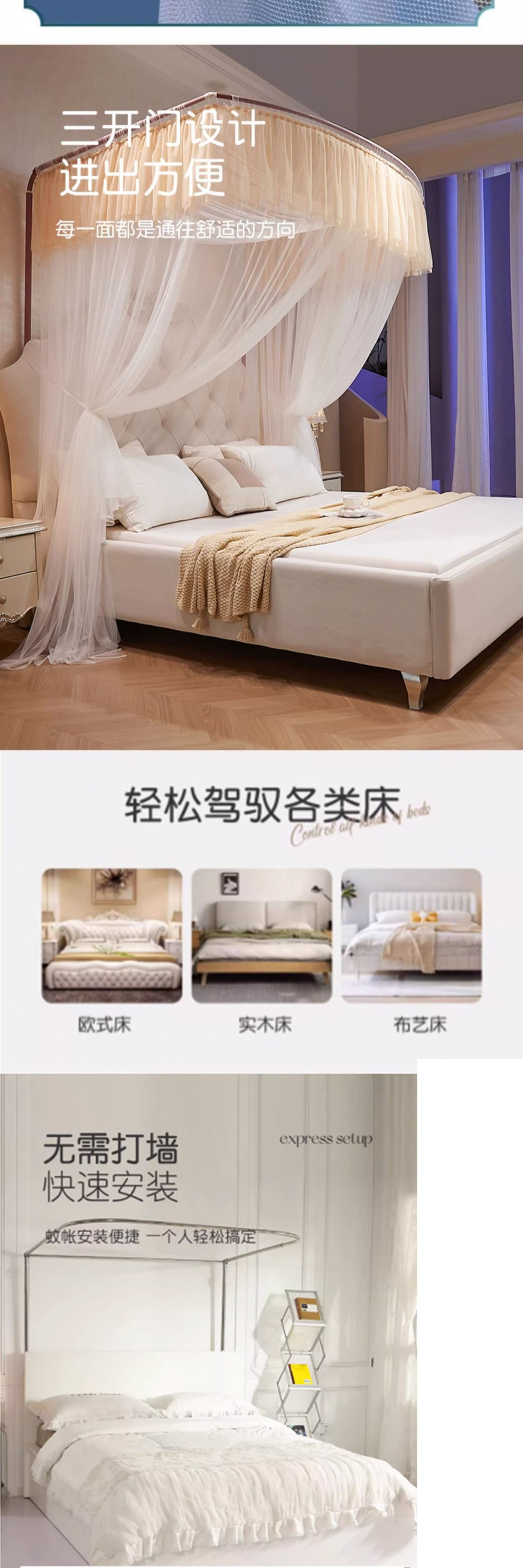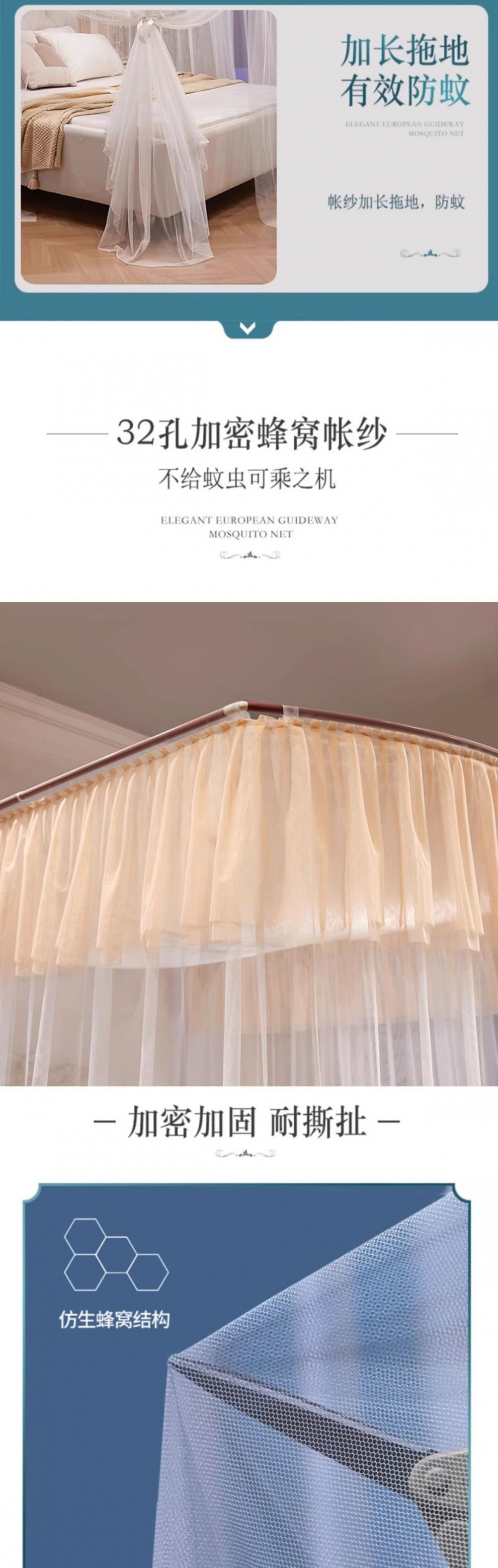 商品名称:u型导轨蚊帐2025新款三开门伸缩家用卧室公主风床