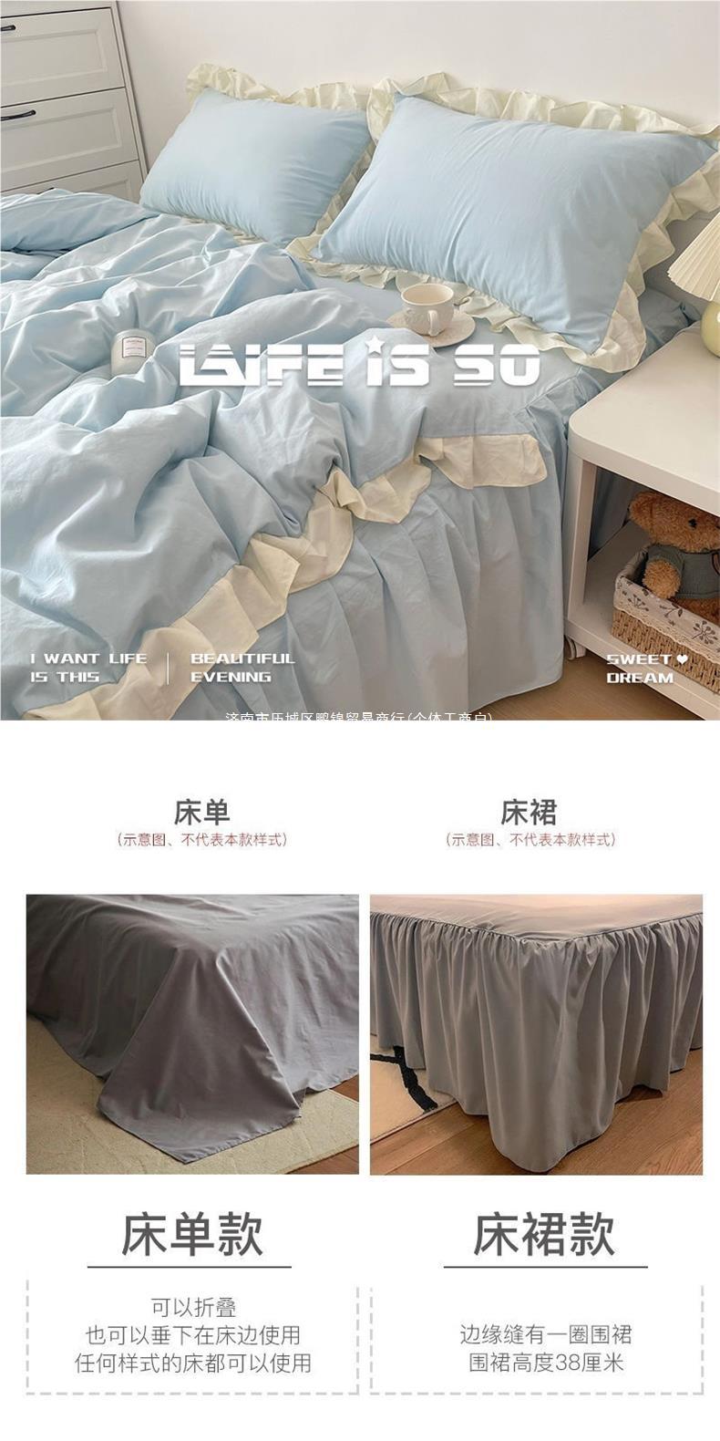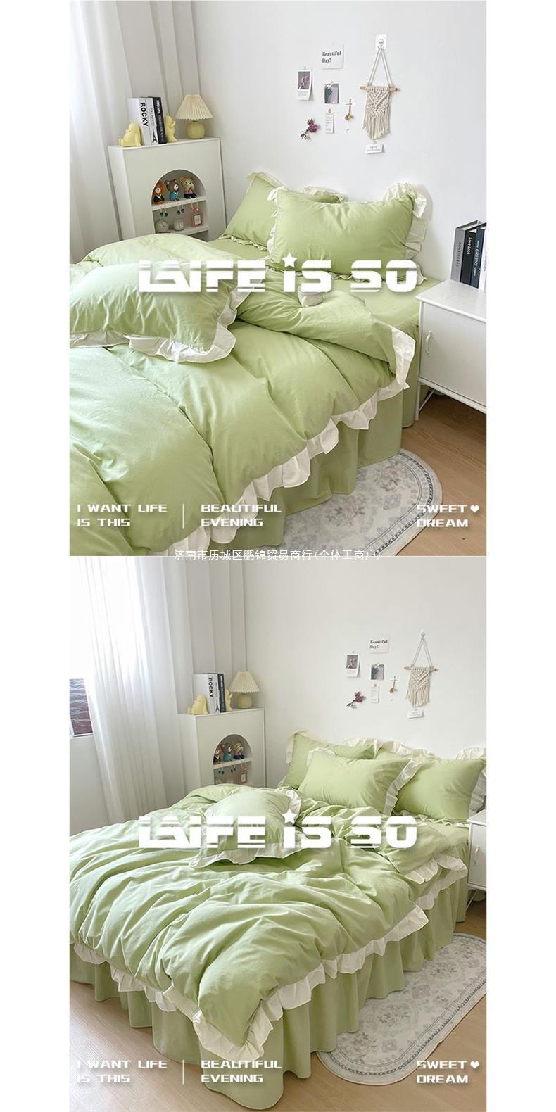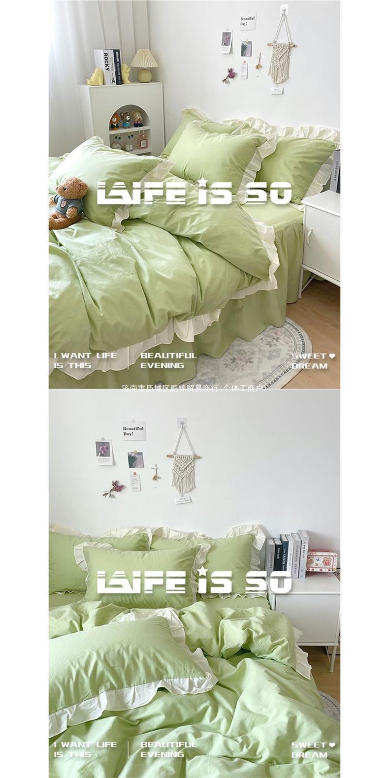 商品名称:ins韩版浅绿色纯色水洗棉床品四件套花边被套床单人学生床三件套